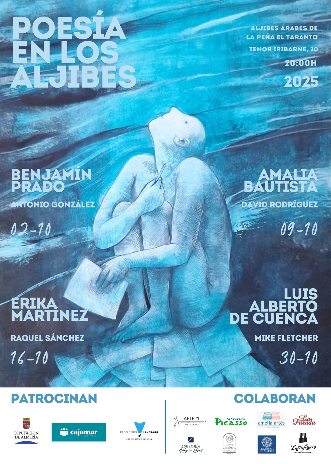 Tras el éxito de la edición anterior, la Asociación Cultural Papeles del Náufrago, con el patrocinio de la Diputación Provincial de Almería y Cajamar, vuelve a apostar por un formato que combina grandes nombres de la poesía contemporánea con músicos de primer nivel, ofreciendo al público un encuentro íntimo y singular.